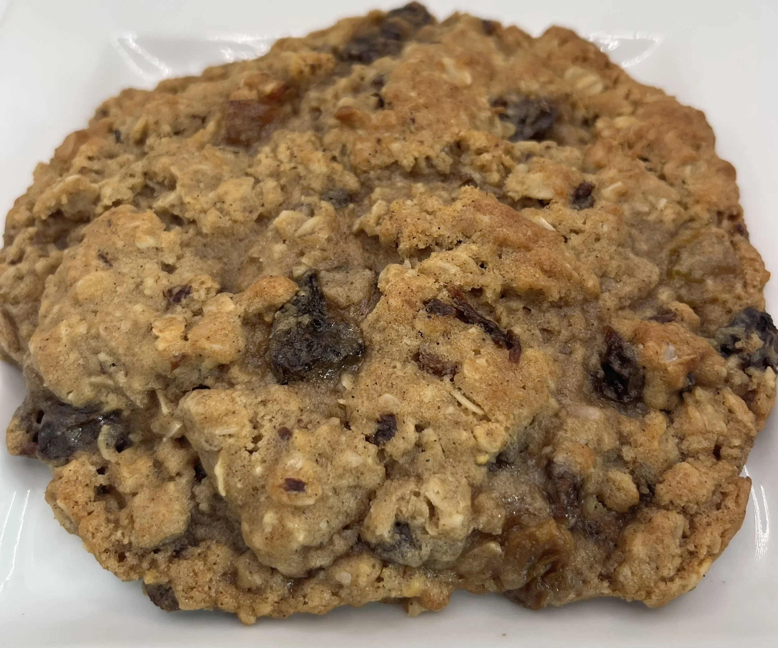 INGREDIENTS: All Purpose Flour, Oats, Browned Butter, Eggs, Vanilla, Baking Soda, Corn Starch, Salt, Raisins, Cherries.